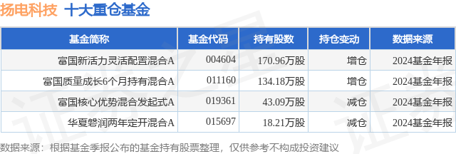 重仓扬电科技的公募基金请见下表: