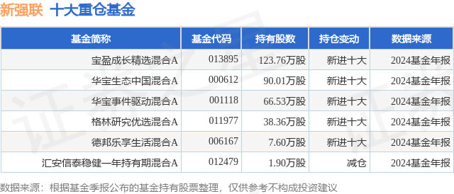 重仓新强联的公募基金请见下表: