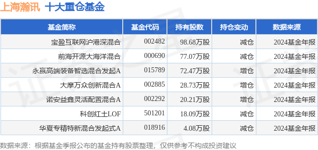 重仓上海瀚讯的公募基金请见下表: