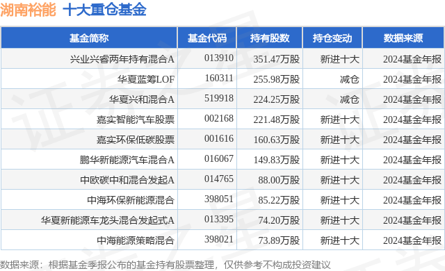 重仓湖南裕能的前十大公募基金请见下表: