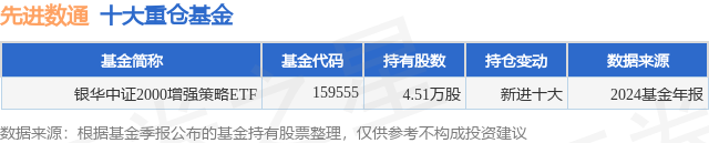 根据2024基金年报公募基金重仓股数据,重仓该股的公募基金共1家,其中持有数量最多的公募基金为银华中证2000增强策略ETF。银华中证2000增强策略ETF目前规模为0.61亿元,最新净值1.1825(2月28日),较上一交易日下跌3.43%,近一年上涨44.93%。该公募基金现任基金经理为张凯 张亦驰。张凯在任的基金产品包括:银华大数据灵活配置定开混合,管理时间为2016年4月7日至今,期间收益率为-15.8%;银华沪深300指数(LOF),管理时间为2018年3月7日至今,期间收益率为20.16%;银华深证100指数(LOF),管理时间为2019年8月29日至今,期间收益率为13.55%;银华新能源新材料A,管理时间为2021年9月28日至今,期间收益率为-45.61%。张亦驰在任的基金产品包括:银华华证ESG领先指数,管理时间为2021年11月23日至今,期间收益率为-7.4%;银华中证农业主题ETF,管理时间为2022年6月20日至今,期间收益率为-33.15%;银华中证影视主题ETF,管理时间为2022年6月20日至今,期间收益率为12.11%;银华中证内地地产主题ETF,管理时间为2022年11月21日至今,期间收益率为-33.89%。
