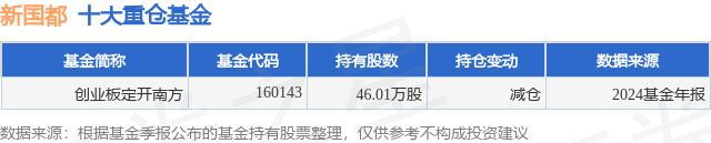 根据2024基金年报公募基金重仓股数据,重仓该股的公募基金共1家,其中持有数量最多的公募基金为创业板定开南方。创业板定开南方目前规模为2.37亿元,最新净值0.963(2月28日),较上一交易日下跌3.02%,近一年上涨18.42%。该公募基金现任基金经理为应帅。应帅在任的基金产品包括:南方稳健成长混合,管理时间为2012年11月23日至今,期间收益率为177.91%;南方稳健成长贰号混合,管理时间为2012年11月23日至今,期间收益率为180.87%;南方驱动混合,管理时间为2016年3月23日至今,期间收益率为161.75%;