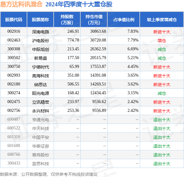 根据2024基金年报公募基金重仓股数据,重仓该股的公募基金共13家,其中持有数量最多的公募基金为易方达科讯混合。易方达科讯混合目前规模为39.41亿元,最新净值1.4959(2月28日),较上一交易日下跌4.12%,近一年上涨31.09%。该公募基金现任基金经理为刘健维。刘健维在任的基金产品包括:易方达科融混合,管理时间为2020年6月6日至今,期间收益率为94.74%;易方达成长动力混合A,管理时间为2022年2月8日至今,期间收益率为14.06%。