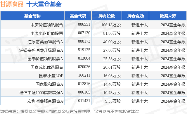 重仓甘源食品的前十大公募基金请见下表: