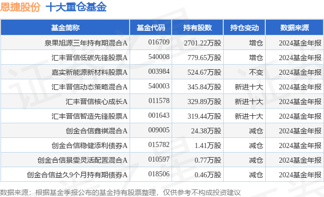 根据2024基金年报公募基金重仓股数据,重仓该股的公募基金共10家,其中持有数量最多的公募基金为泉果旭源三年持有期混合A。泉果旭源三年持有期混合A目前规模为109.41亿元,最新净值0.8196(2月28日),较上一交易日下跌3.35%,近一年上涨29.01%。该公募基金现任基金经理为赵诣。