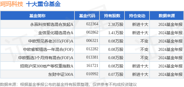 根据2024基金年报公募基金重仓股数据,重仓该股的公募基金共7家,其中持有数量最多的公募基金为永赢科技智选混合发起A。永赢科技智选混合发起A目前规模为0.14亿元,最新净值1.2699(3月3日),较上一交易日下跌3.26%。该公募基金现任基金经理为任桀。