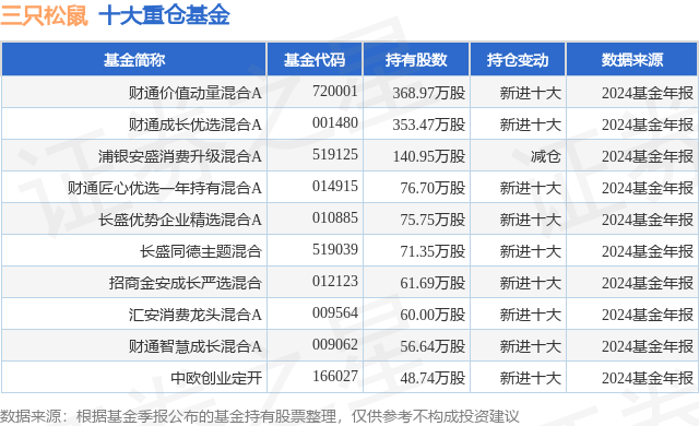 重仓三只松鼠的前十大公募基金请见下表: