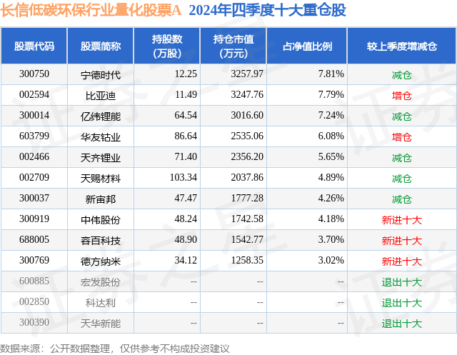 根据2024基金年报公募基金重仓股数据,重仓该股的公募基金共1家,其中持有数量最多的公募基金为长信低碳环保行业量化股票A。长信低碳环保行业量化股票A目前规模为2.87亿元,最新净值1.4457(3月3日),较上一交易日上涨3.1%,近一年上涨16.49%。该公募基金现任基金经理为左金保 姚奕帆。左金保在任的基金产品包括:长信量化中小盘股票,管理时间为2015年3月13日至今,期间收益率为92.03%;长信量化先锋混合A,管理时间为2015年3月13日至今,期间收益率为69.8%;长信电子信息量化灵活配置混合A,管理时间为2016年7月27日至今,期间收益率为9.3%;姚奕帆在任的基金产品包括:长信消费精选量化股票A,管理时间为2022年1月28日至今,期间收益率为-35.46%;长信量化价值驱动混合A,管理时间为2022年1月28日至今,期间收益率为5.87%;长信中证科创创业50指数增强A,管理时间为2023年1月31日至今,期间收益率为-3.27%。