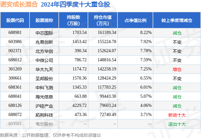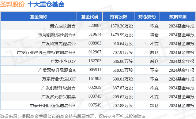 重仓圣邦股份的前十大公募基金请见下表: