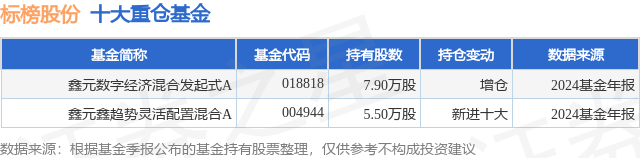 重仓标榜股份的公募基金请见下表: