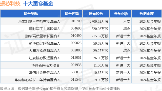 重仓振芯科技的公募基金请见下表: