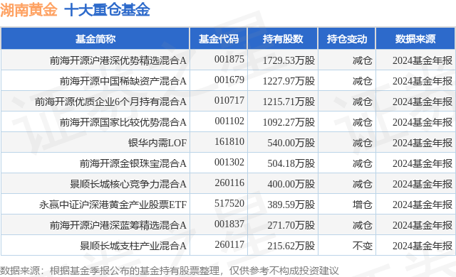 重仓湖南黄金的前十大公募基金请见下表: