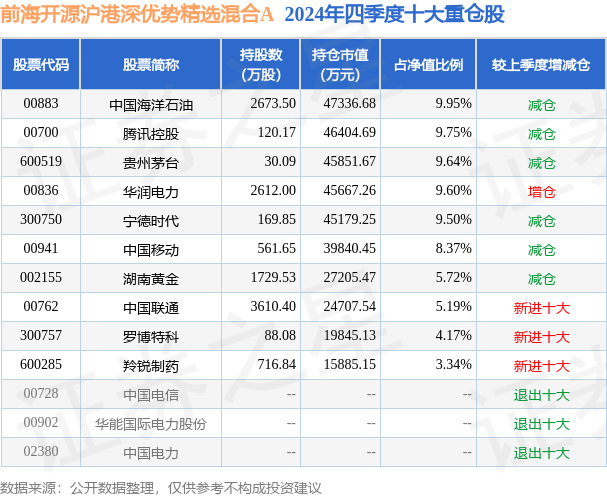 前海开源沪港深优势精选混合A的前十大重仓股如下: