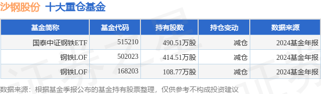 重仓沙钢股份的公募基金请见下表: