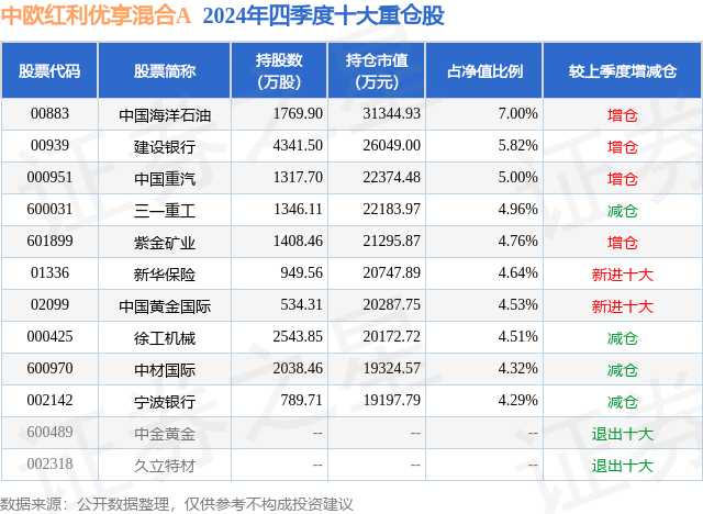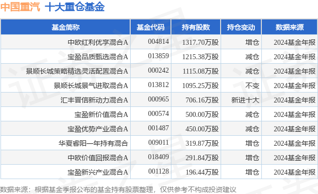 根据2024基金年报公募基金重仓股数据,重仓该股的公募基金共48家,其中持有数量最多的公募基金为中欧红利优享混合A。中欧红利优享混合A目前规模为29.1亿元,最新净值1.6229(3月4日),较上一交易日上涨0.33%,近一年上涨14.77%。该公募基金现任基金经理为蓝小康。蓝小康在任的基金产品包括:中欧价值发现混合A,管理时间为2017年5月11日至今,期间收益率为70.21%;中欧融恒平衡混合A,管理时间为2023年3月21日至今,期间收益率为18.91%;中欧价值回报混合A,管理时间为2023年6月9日至今,期间收益率为17.84%。