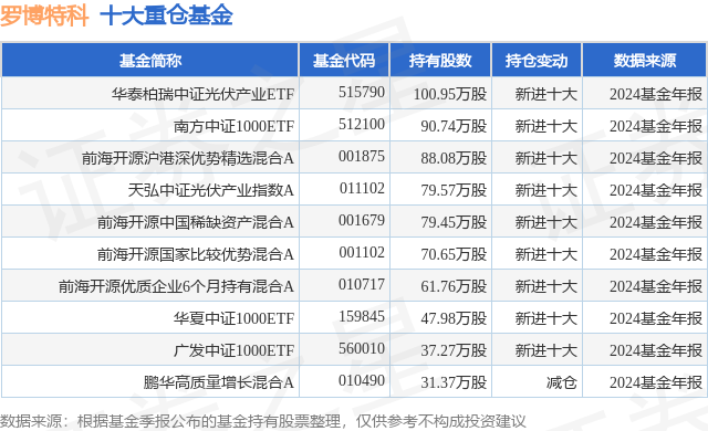 重仓罗博特科的前十大公募基金请见下表: