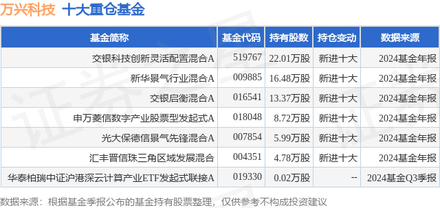 重仓万兴科技的公募基金请见下表: