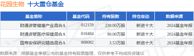 重仓花园生物的公募基金请见下表: