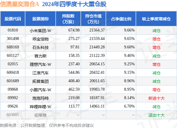 根据2024基金年报公募基金重仓股数据,重仓该股的公募基金共56家,其中持有数量最多的公募基金为信澳星奕混合A。信澳星奕混合A目前规模为17.57亿元,最新净值1.3828(3月6日),较上一交易日上涨2.32%,近一年上涨59.99%。该公募基金现任基金经理为李博。李博在任的基金产品包括:信澳新能源精选混合A,管理时间为2021年5月25日至今,期间收益率为61.01%;信澳博见成长一年定期开放混合A,管理时间为2023年5月17日至今,期间收益率为51.82%;