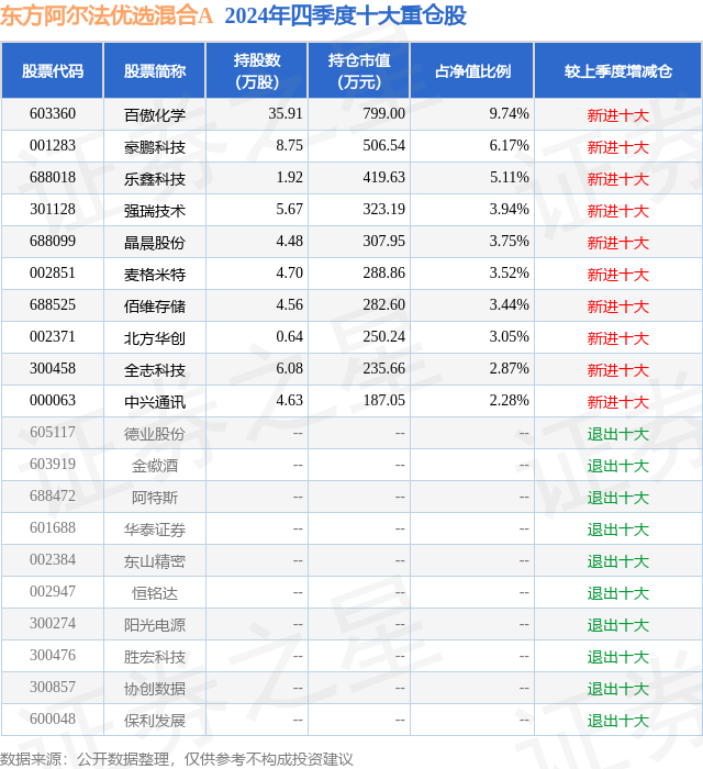 根据2024基金年报公募基金重仓股数据,重仓该股的公募基金共1家,其中持有数量最多的公募基金为东方阿尔法优选混合A。东方阿尔法优选混合A目前规模为0.62亿元,最新净值0.995(3月6日),较上一交易日上涨1.64%,近一年上涨45.57%。该公募基金现任基金经理为周谧。
