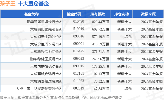 重仓孩子王的前十大公募基金请见下表: