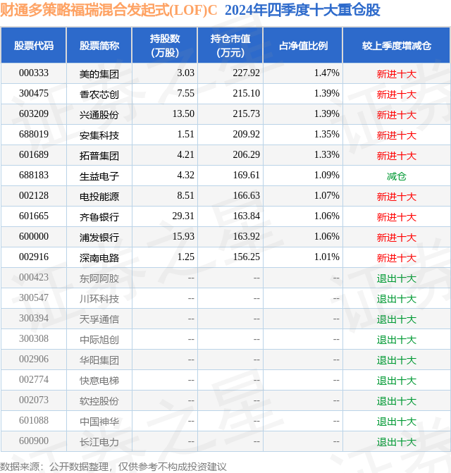 财通多策略福瑞混合发起式(LOF)C的前十大重仓股如下: