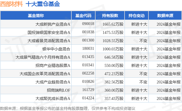 重仓西部材料的前十大公募基金请见下表: