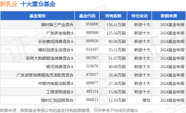重仓新乳业的前十大公募基金请见下表: