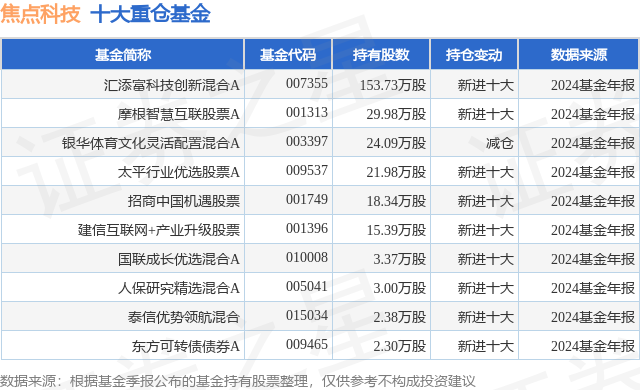 根据2024基金年报公募基金重仓股数据,重仓该股的公募基金共11家,其中持有数量最多的公募基金为汇添富基金的汇添富科技创新混合A。汇添富科技创新混合A目前规模为20.48亿元,最新净值2.3864(3月7日),较上一交易日下跌0.97%,近一年上涨46.31%。该公募基金现任基金经理为马翔。马翔在任的基金产品包括:汇添富民营活力混合,管理时间为2016年3月11日至今,期间收益率为77.12%;汇添富创新增长一年定开混合A,管理时间为2020年6月22日至今,期间收益率为11.34%;汇添富策略增长灵活配置混合,管理时间为2020年7月24日至今,期间收益率为7.91%。