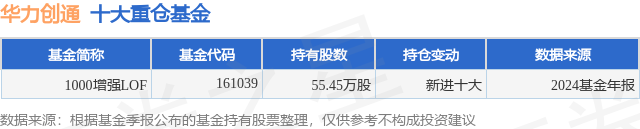 根据2024基金年报公募基金重仓股数据,重仓该股的公募基金共1家,其中持有数量最多的公募基金为富国基金的1000增强LOF。1000增强LOF目前规模为9.91亿元,最新净值2.0665(3月10日),较上一交易日上涨0.02%,近一年上涨20.79%。该公募基金现任基金经理为徐幼华 方旻 王保合。王保合在任的基金产品包括:富国上证指数ETF联接A,管理时间为2011年3月3日至今,期间收益率为62.31%;上证综指ETF,管理时间为2011年3月3日至今,期间收益率为72.25%;富国中证国有企业改革指数(LOF)A,管理时间为2015年4月15日至今,期间收益率为-6.82%;富国中证全指证券公司指数(LOF)C,管理时间为2021年8月17日至今,期间收益率为3.42%。徐幼华在任的基金产品包括:富国中证红利指数增强A,管理时间为2011年5月13日至今,期间收益率为178.66%;富国中证500指数增强(LOF)A,管理时间为2011年10月12日至今,期间收益率为186.53%;富国大盘价值量化精选混合A,管理时间为2018年7月19日至今,期间收益率为60.82%。方旻在任的基金产品包括:富国中证红利指数增强A,管理时间为2014年11月19日至今,期间收益率为180.84%;富国沪深300指数增强A,管理时间为2014年11月19日至今,期间收益率为143.84%;富国中证500指数增强(LOF)A,管理时间为2014年11月19日至今,期间收益率为107.93%;上证综指ETF,管理时间为2014年11月19日至今,期间收益率为89.22%。