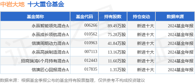 重仓中岩大地的公募基金请见下表: