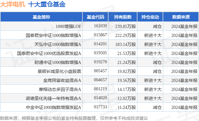 重仓大洋电机的前十大公募基金请见下表: