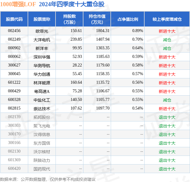 1000增强LOF的前十大重仓股如下: