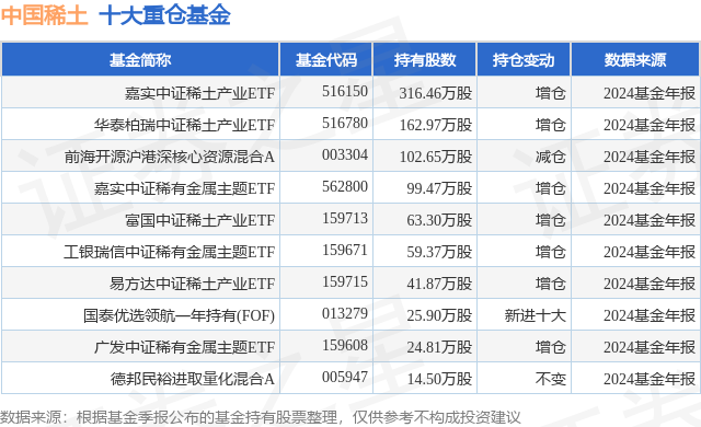 重仓中国稀土的前十大公募基金请见下表: