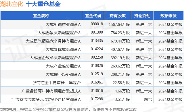 重仓湖北宜化的前十大公募基金请见下表: