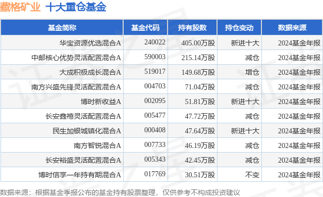 重仓藏格矿业的前十大公募基金请见下表: