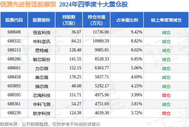 信澳先进智造股票型的前十大重仓股如下: