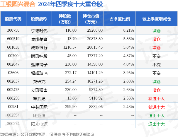 工银圆兴混合的前十大重仓股如下: