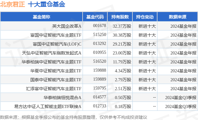 重仓北京君正的前十大公募基金请见下表: