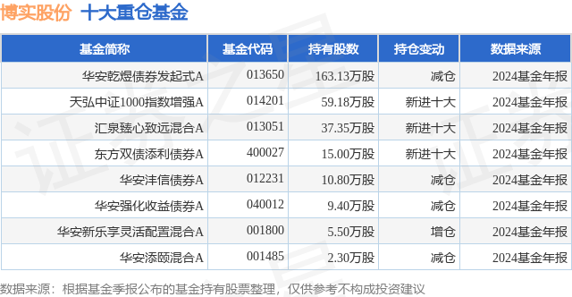 重仓博实股份的公募基金请见下表: