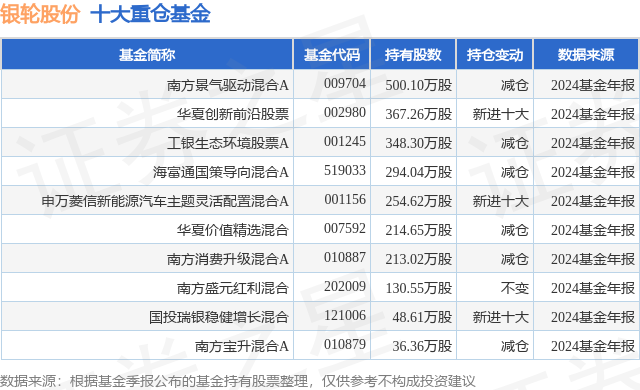 重仓银轮股份的前十大公募基金请见下表: