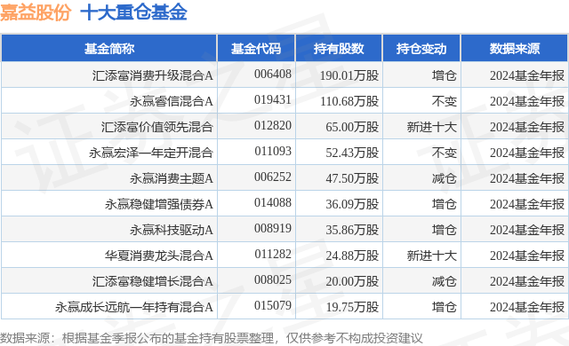重仓嘉益股份的前十大公募基金请见下表: