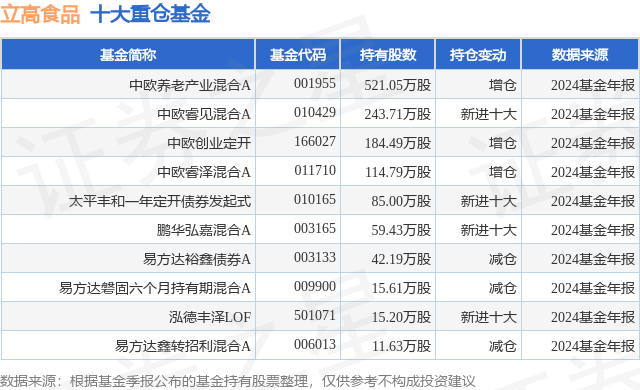 重仓立高食品的前十大公募基金请见下表: