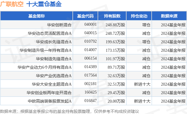 重仓广联航空的前十大公募基金请见下表: