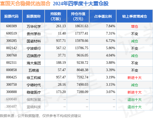 根据2024基金年报公募基金重仓股数据,重仓该股的公募基金共36家,其中持有数量最多的公募基金为富国基金的富国天合稳健优选混合。富国天合稳健优选混合目前规模为23.77亿元,最新净值1.4285(3月13日),较上一交易日上涨0.2%,近一年上涨2.18%。该公募基金现任基金经理为张啸伟。张啸伟在任的基金产品包括:富国美丽中国混合A,管理时间为2016年5月19日至今,期间收益率为130.54%;富国睿泽回报混合,管理时间为2019年6月5日至今,期间收益率为86.78%;富国沪港深优质资产混合发起式A,管理时间为2024年3月25日至今,期间收益率为20.61%。