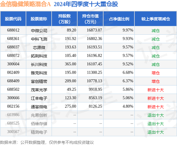 根据2024基金年报公募基金重仓股数据,重仓该股的公募基金共20家,其中持有数量最多的公募基金为金信基金的金信稳健策略混合A。金信稳健策略混合A目前规模为16.92亿元,最新净值1.523(3月13日),较上一交易日下跌2.22%,近一年上涨18.48%。该公募基金现任基金经理为孔学兵。孔学兵在任的基金产品包括:金信行业优选混合发起式A,管理时间为2020年9月29日至今,期间收益率为26.07%;金信精选成长混合A,管理时间为2023年9月14日至今,期间收益率为12.19%。