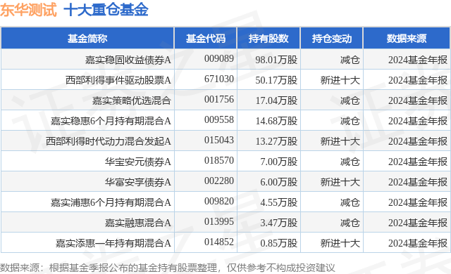 根据2024基金年报公募基金重仓股数据,重仓该股的公募基金共10家,其中持有数量最多的公募基金为嘉实基金的嘉实稳固收益债券A。嘉实稳固收益债券A目前规模为26.88亿元,最新净值1.164(3月13日),较上一交易日下跌0.26%,近一年上涨3.97%。该公募基金现任基金经理为胡永青。胡永青在任的基金产品包括:嘉实策略优选混合,管理时间为2016年12月1日至今,期间收益率为68.98%;嘉实浦惠6个月持有期混合A,管理时间为2020年10月14日至今,期间收益率为9.62%;嘉实稳惠6个月持有期混合A,管理时间为2020年11月27日至今,期间收益率为7.14%。