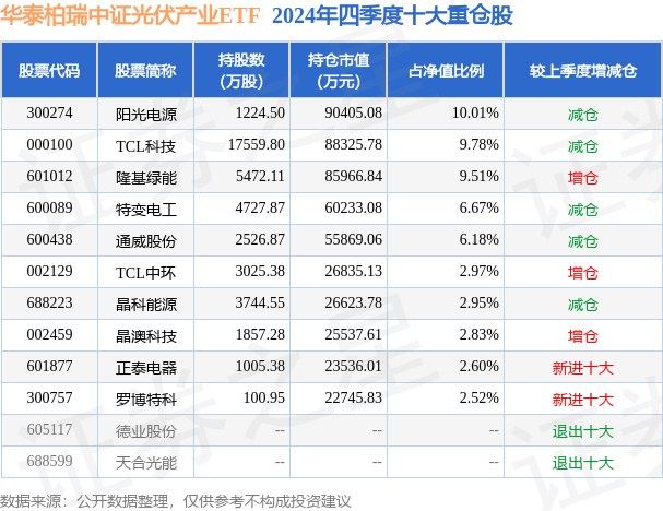 华泰柏瑞中证光伏产业ETF的前十大重仓股如下: