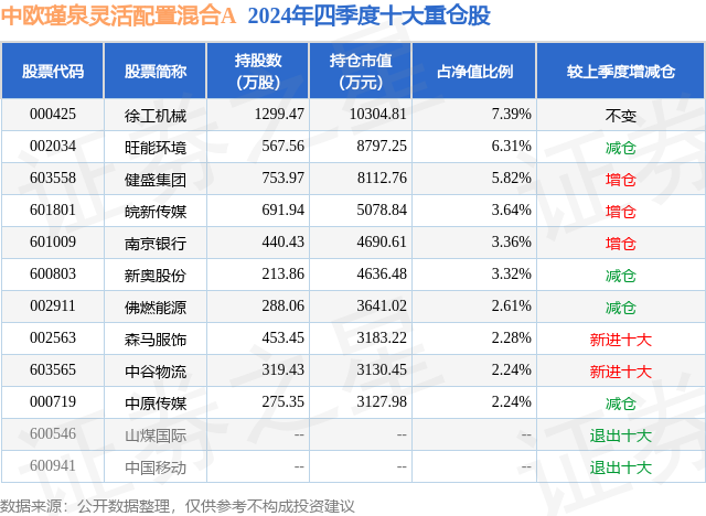 根据2024基金年报公募基金重仓股数据,重仓该股的公募基金共7家,其中持有数量最多的公募基金为中欧基金的中欧瑾泉灵活配置混合A。中欧瑾泉灵活配置混合A目前规模为10.07亿元,最新净值1.6976(3月14日),较上一交易日上涨0.95%,近一年上涨12.58%。该公募基金现任基金经理为张跃鹏 刘勇。张跃鹏在任的基金产品包括:中欧瑾尚混合A,管理时间为2021年11月3日至今,期间收益率为-6.89%。刘勇在任的基金产品包括:中欧颐利债券A,管理时间为2023年8月14日至今,期间收益率为7.57%;中欧红利精选混合发起A,管理时间为2024年7月16日至今,期间收益率为13.08%;中欧瑾尚混合A,管理时间为2024年11月6日至今,期间收益率为0.91%。