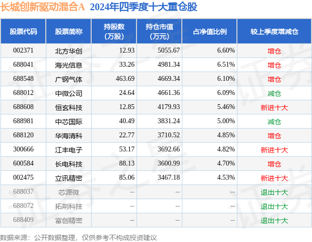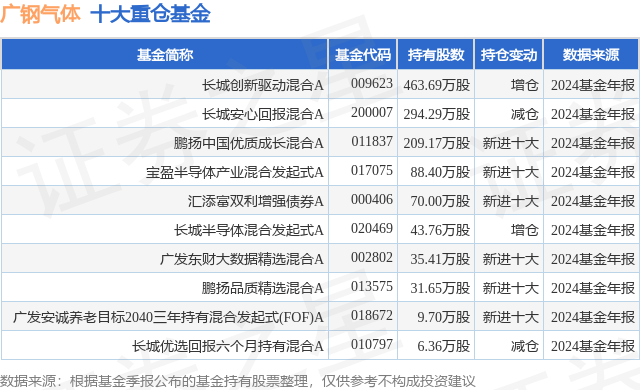 根据2024基金年报公募基金重仓股数据,重仓该股的公募基金共11家,其中持有数量最多的公募基金为长城基金的长城创新驱动混合A。长城创新驱动混合A目前规模为6.81亿元,最新净值0.8763(3月14日),较上一交易日上涨1.65%,近一年上涨41.98%。该公募基金现任基金经理为谭小兵 杨维维。谭小兵在任的基金产品包括:长城医疗保健混合A,管理时间为2016年2月3日至今,期间收益率为106.82%;长城健康生活混合A,管理时间为2020年8月14日至今,期间收益率为-44.81%;长城医药科技六个月持有混合A,管理时间为2021年6月9日至今,期间收益率为-40.11%。杨维维在任的基金产品包括:长城半导体混合发起式A,管理时间为2024年2月27日至今,期间收益率为44.41%;长城竞争优势六个月混合A,管理时间为2025年1月17日至今,期间收益率为24.21%。